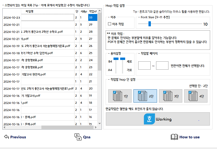 한글 출력시 오류는 작업id를 같이 보내주시면 확인이가능합니다.