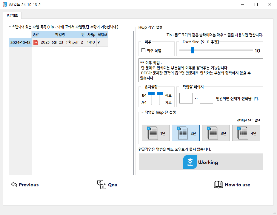 - Previous work : 이전에 업로드한 PDF를 한글작업을 할 때