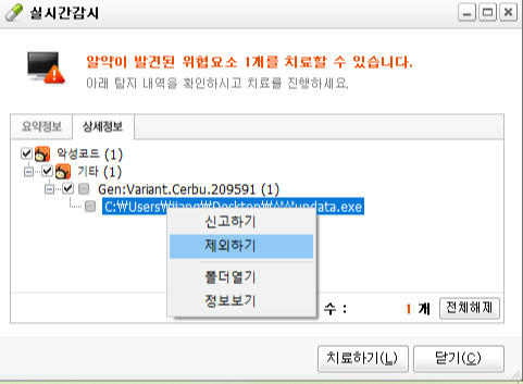 혹 불안하시면 일단 제외하고 받은 프로그램을 백신 돌러보셔도 됩니다.