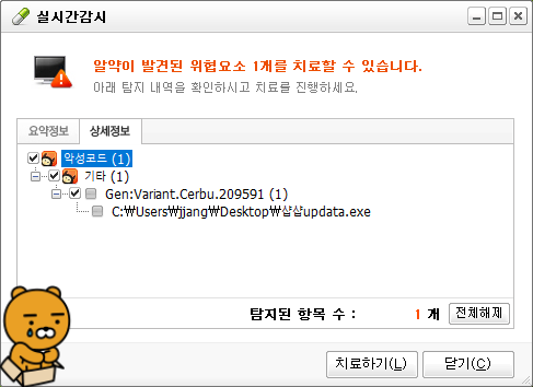 이때... 가끔.. 알약 같은 경우 우리 샵샵이를 바이러스취급을 할 때가 있습니다.